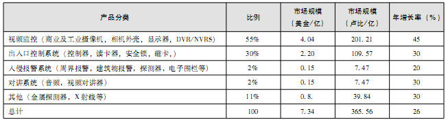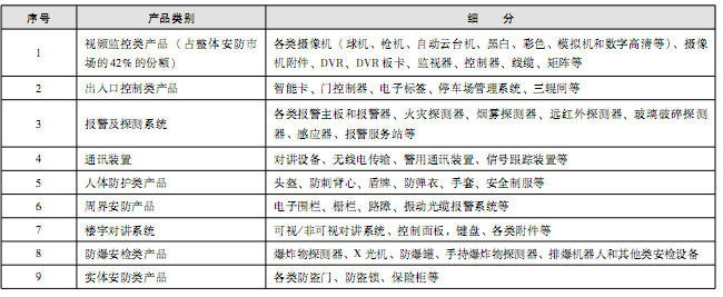 (1)商業(yè)安全類:CCTV及監(jiān)視系統(tǒng)、可視對講、電視監(jiān)控、防盜報警、身份識別、認證系統(tǒng),金融系統(tǒng)保安防范產(chǎn)品;