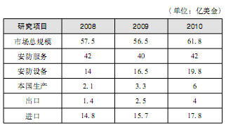 到2010年末,俄羅斯安防市場總規(guī)模達到61.8億美金,以下為2008~2010年末相關(guān)數(shù)據(jù):
