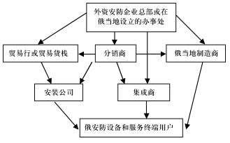 除此之外,地產(chǎn)公司、各大銀行、零售店、能源企業(yè)(石油和天然氣)等實體機構(gòu)同樣作為安防產(chǎn)品的購買商和終端用戶,他們的購買力也不容忽視,總需求量占俄整個安防市場的50%以上。在上文的俄羅斯安防市場背景中已經(jīng)提到,俄安防企業(yè)主要為分銷商和系統(tǒng)集成商,同時還包括少量產(chǎn)品制造商、解決方案供應(yīng)商、安防產(chǎn)品零售商和安防設(shè)備安裝和服務(wù)公司,共同組成了俄羅斯安防市場的參與者,基本結(jié)構(gòu)圖如下: