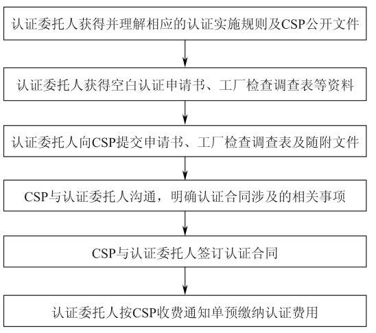 (11)對不同情況的認證申請,如初次申請,獲證后擴大、縮小申請及變更、注銷、暫停等申請,所提交的申請文件,按CSP相應文件規(guī)定和/或要求辦理。